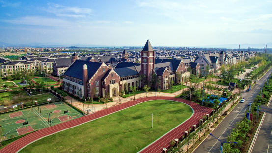 教学楼采用动静结合的理念进行设计,通过精心巧妙的平面布局有效规避了相邻楼段学生上课的相互干扰。学校里建有欧式建筑风格的塔钟,每个钟楼设置4个大本钟,大本钟拥有GPS功能,只要通电就能与卫星时间自动调节到准确时间点。