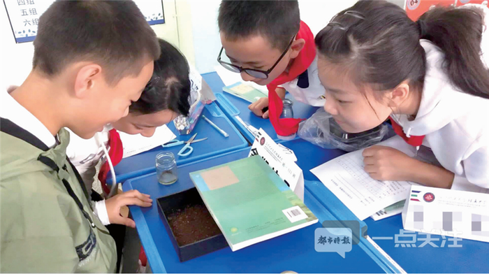 学生正在做实验,观察光照对鼠妇的影响 都市时报全媒体记者 董建楠