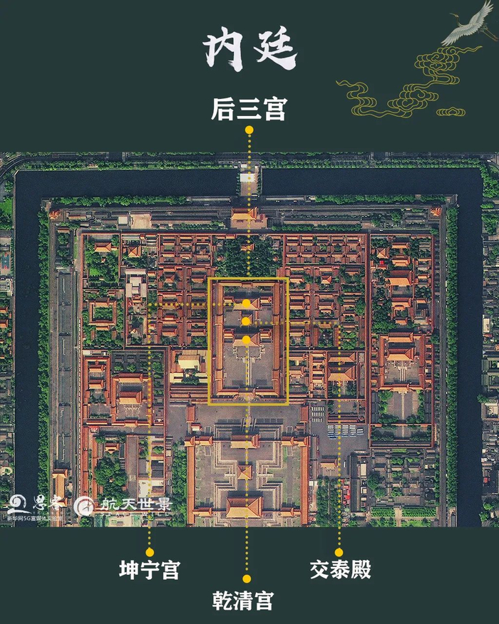▲上图为内廷后三宫分布图,卫星数据来源:高景一号;下图为乾清宫,图片来源:视觉中国。
