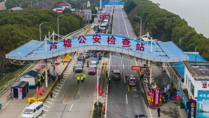 疫情期间,青浦吴江携手推进疫情防控一体化,入沪车辆防疫检查站前移至芦墟检查站。李铭珅 摄