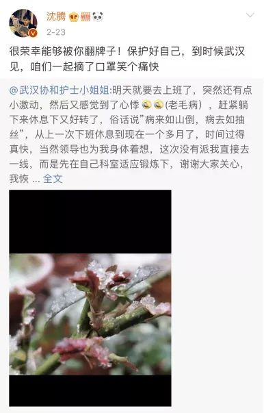 沈腾微博回复武汉协和医院护士。