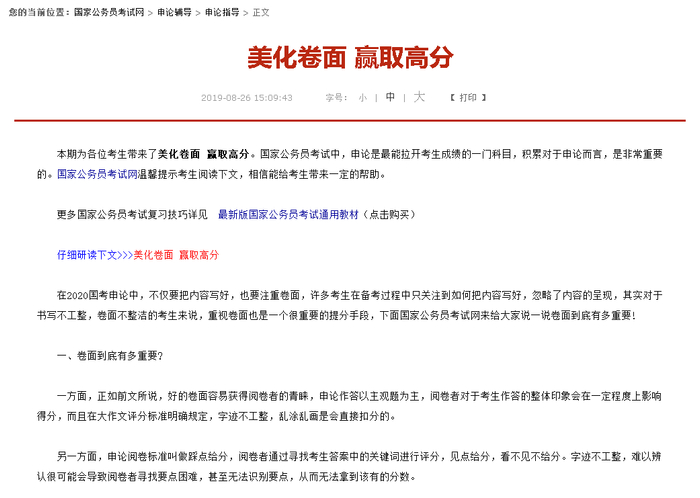 2019年国家公务员考试网,也曾温馨发布申论“提分手段”,《美化卷面 赢取高分》。