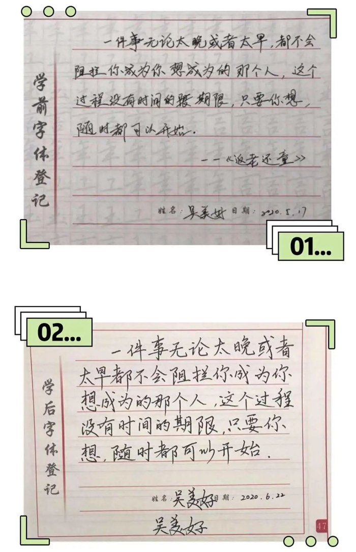 练字前后对比▼
