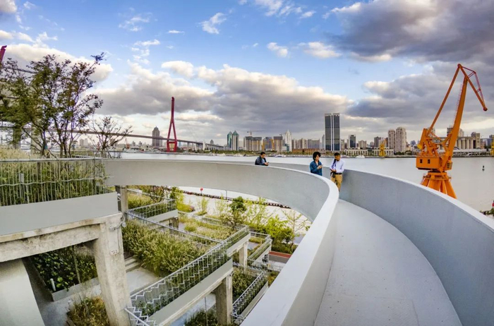 秦皇岛路码头到杨树浦发电厂的5.5公里滨江公共空间岸线,被誉为“中国近代工业的发祥地”,创造了“百年工业”中国众多之最,兴办了中国最早的机械造纸厂、远东最大毛条生产厂、制皂厂、中国最早的工业自来水厂、远东最大火力发电厂。杨浦滨江岸线长、工业遗存多,为了记录滨江岸线的点滴变化,邓郁馨随身携带一个笔记本,将经过考证后的说法补充记录进讲解词里。雨水花园所在位置就是上海第一毛条厂旧址,栈道全部采用钢结构,栈桥上则以九块钢板镌刻新怡和纱厂发展历程中的重要节点,让百姓能在游览中“阅读”历史。“杨浦滨江从‘工业锈带’华丽转变为‘生活秀带’,当我带队走到雨水花园,会重点讲解杨浦滨江正在打造生态示范区。”邓郁馨介绍道。一次,她带队讲解时,听说了杨浦滨江也在积极建设生态示范区,并查阅了相关官方信息,得知杨浦滨江有着极其优质的城市自然禀赋,已经发现苍鹭、白鹭、夜鹭等近30种鸟类,杨浦滨江计划在滩涂周边增加浆果类树木等。