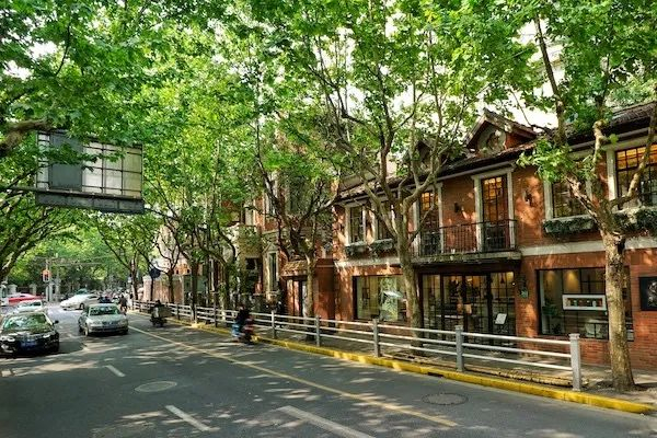 从新闸路沿着陕西北路向南漫步,人行道地砖间隔十多米会镶嵌一块铜牌,书写着陕西北路休闲街等字样;人行道狭窄,有些区域仅能一人通行。陕西北路是上海64条永不拓宽马路中的一条,大部分路段保持着一百年来的路宽,绿树成荫,掩映着一幢接一幢的百年老建筑。“它紧邻南京西路商圈却没有变成商业街,保留着石库门、洋房民居、学校、教堂、出版社等等,是一条原汁原味的百年老街,这也是这条街真正宝贵的地方。”吴斐这样说。