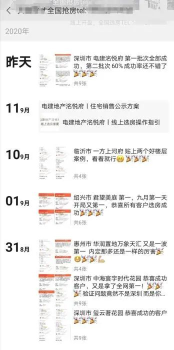 面对价格和抢房成功机会有多大的问题,这家店铺表示起步价3000元,如果楼盘是分批次抢的情况,第二批次会比第一批次的更贵。“深圳的一处楼盘,第二批次是60%的成功率,除了我们,第二批次别家没有这么高的成功率。您可以看看我们的评价,都是好评!”