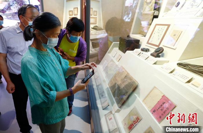 9月18日,中国人民抗日战争纪念馆联合中国人民革命军事博物馆等全国10家革命类纪念(博物)馆共同主办的《抗日根据地的创建与发展》专题展览在中国人民抗日战争纪念馆开幕。图为粟裕将军女儿粟惠宁(绿衣)参观展览。 中新社记者 富田 摄