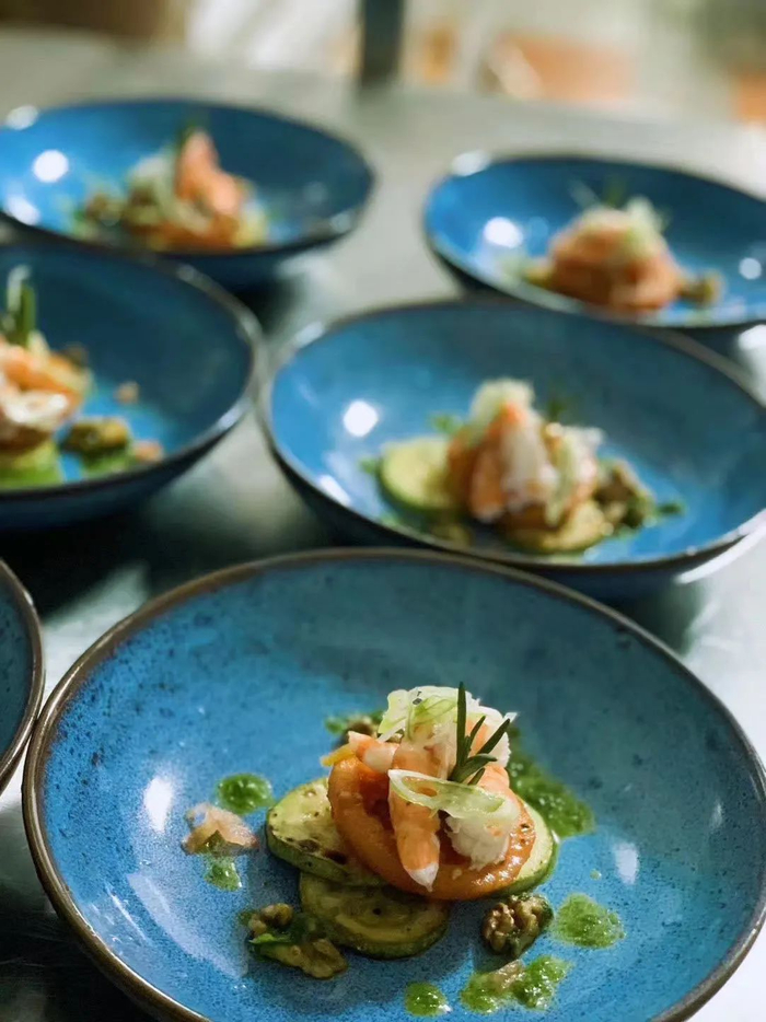 餐厅外有一片延绵的湿地,小水潭中时不时会有鱼虾扑腾而过,带着水珠的低矮花草间有白鹭踱步其间,整片湿地好似一个独立的自然生态系统静静伫立在餐厅旁,任过客停留痴望……