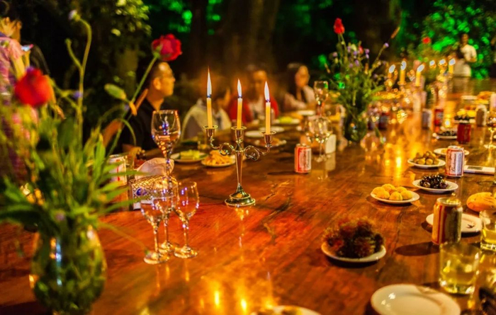 人们夜泳、举酒、聊天一直到深夜,笑声、蝉鸣声和水声,仿佛交织到深林的梦里。当夜深月稀时,倦意袭来,便在舒适的床榻上沉沉地睡去。