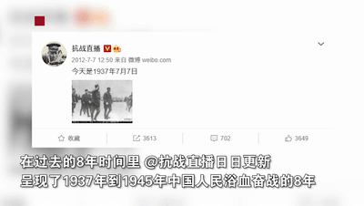 今年9月2日,持续更新了8年的@抗战直播宣告结束。当时就有网友发问,这个账号将何去何从。