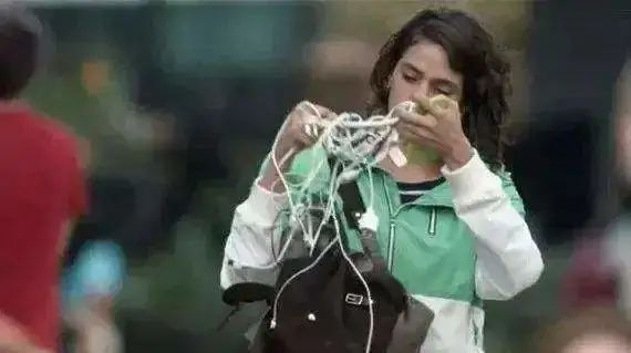 而线的另一头隐藏在包里面,用来连接充电宝~