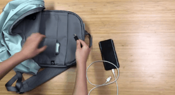 但是我们拿出来的时候是这样:凌乱的数据线、手机、充电宝,全部拿在手上,很不美观!