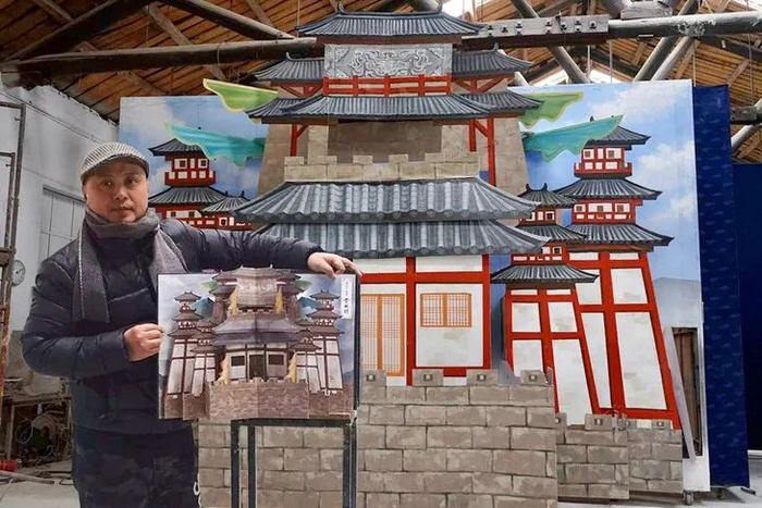 △今年央视春晚《璀璨梨园》里四大名著戏曲联唱舞台立体书,就是王伟大师设计监制。