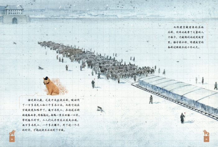 这一切的答案,都可以在套装中另一本书《肈建紫禁城》里,它还请来了最熟悉故宫的“御猫”给孩子做向导。