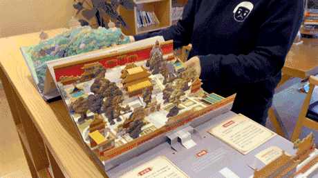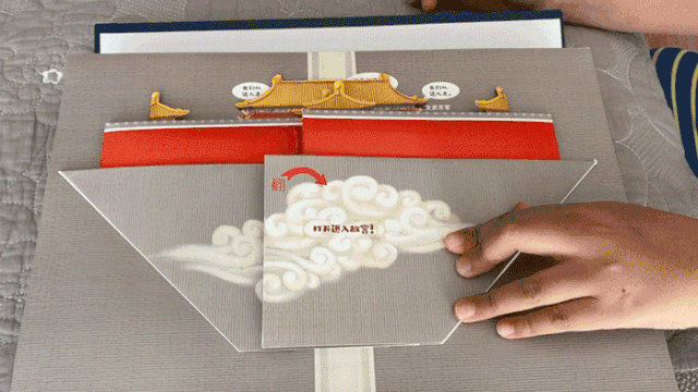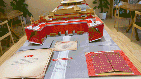 它包括一本纯手工制作,3.2米长卷高度还原整个故宫中轴线的互动式立体大书——《打开故宫》,让孩子“亲手探索故宫”。
