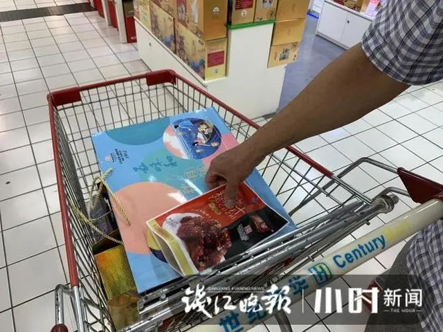 74岁的楼大爷更追求朴素一点,买了一盒标价83元的五味和月饼,他说这是准备送给90多岁的丈母娘的。“送人总归还是要好看一点的,这个礼盒就比较好看。”楼大爷指了指购物车里的糖醋汁,表示这是购买月饼赠送的,感觉很实惠。