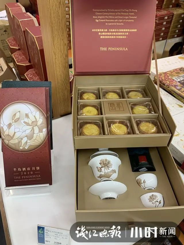 在各大品牌的网红月饼中,半岛酒店的一款礼盒售价2388元,算是记者当天看到过的最贵的一款了。