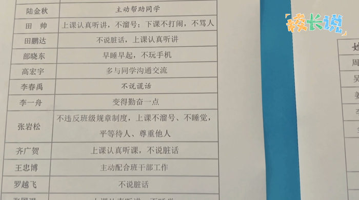 在每个班级的教室里,都张贴着学生的目标。“不说脏话”“不带手机”“上课不睡觉”,每个学生都从明确的小目标开始努力。一月一汇总、一学期一统计、一学年一分析,学生通过评价来判断自己、找出差距、提升自己。