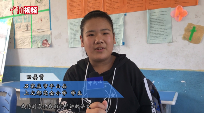 田姜霄:我特别喜欢我们老师讲的语文,我们现在正在学《草原》这篇课文,他把他去内蒙古的经历(讲给我们听)、照片给我们看,让我们更好的去了解。
