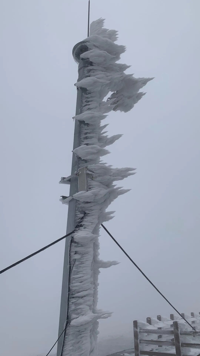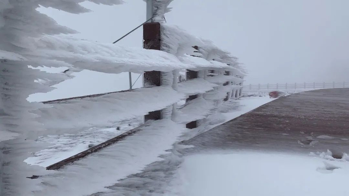 长白山今日积雪已达半米!看,冰结成了风的形状!