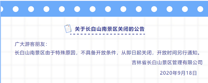 长白山南景区由于特殊原因