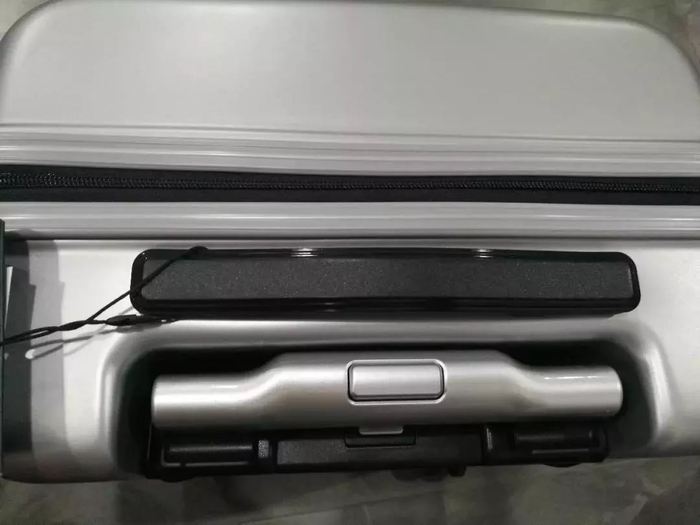 拉杆还很顺滑,摇晃度在1.5cm以内,不像有的箱子拉起来,晃的你心烦。
