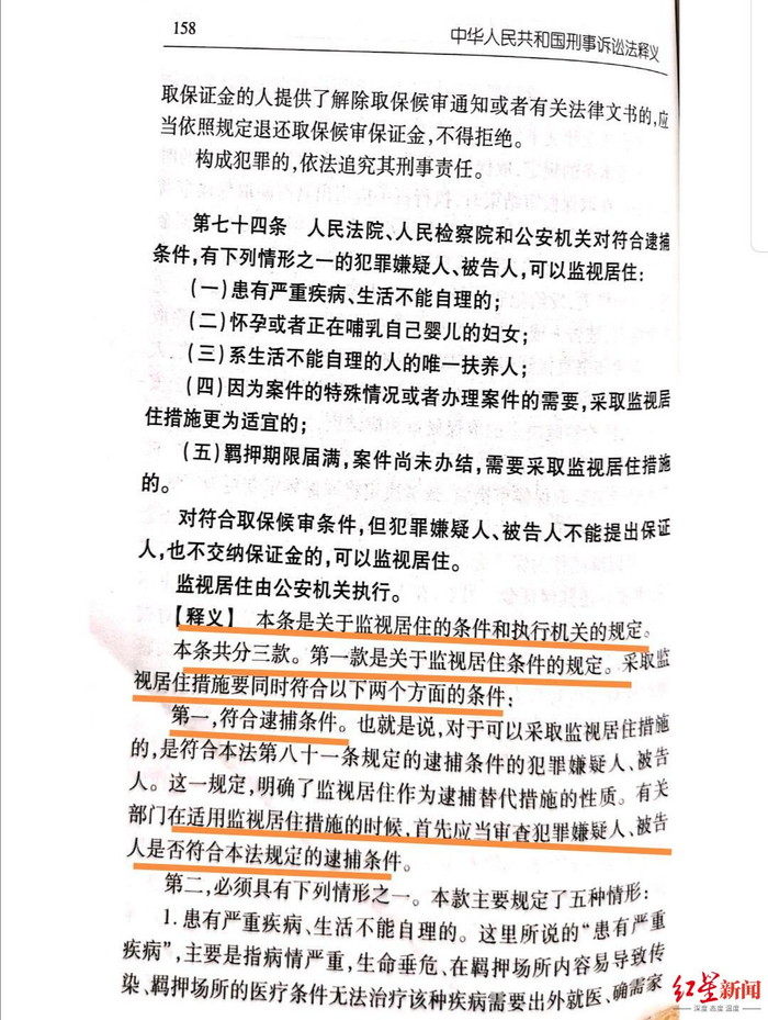 彭江华的辩护律师进一步介绍,根据刑诉法第74条、第71条第3款的规定,监视居住条件有三种情形:符合逮捕条件且存有五种特殊情形之一(备注:下文有“五种情形”的详细内容);符合取保候审条件但不能提供保证金或保人;被取保候审的人违反规定。