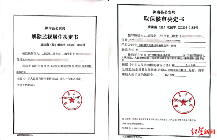 2020年7月10日,滦南县公安局向彭江华出具了《解除监视居住决定书》,称该局于6月17日决定对彭江华监视居住,现因“采取强制措施不当”决定予以解除。与此同时,滦南县公安局为彭江华办理了取保候审。