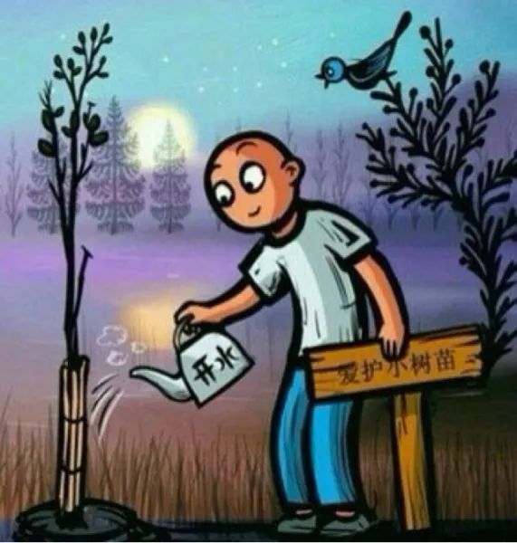 用开水浇灌,明面上是在做着爱护小树苗的事儿,实际上却是将小树苗置之死地。