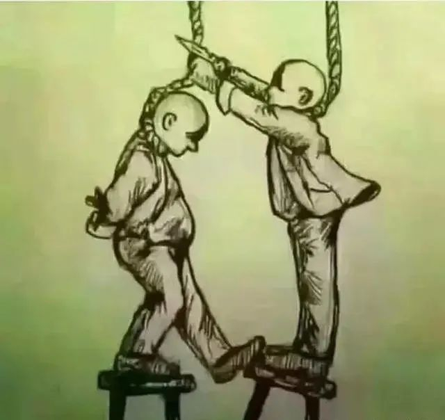 所谓恩将仇报,不过如此:你在帮他人剪绳子的同时,对方会踢翻你的脚凳。你尽全力帮助的人,在下一秒就将你置于死地。
