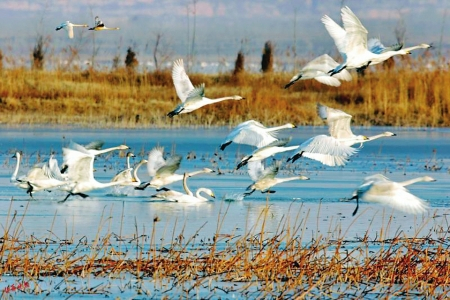 “每年10月下旬,来自西伯利亚的大天鹅们就会成群结队地来到这里栖息,去年来了两万多只,今年估计会更多。”指着波光鳞鳞的湖面,运城市芮城县圣天湖景区的讲解员柯真高兴地说,“白天鹅、黑天鹅、灰天鹅等珍稀动物都来了,说明圣天湖的生态环境在持续向好。”