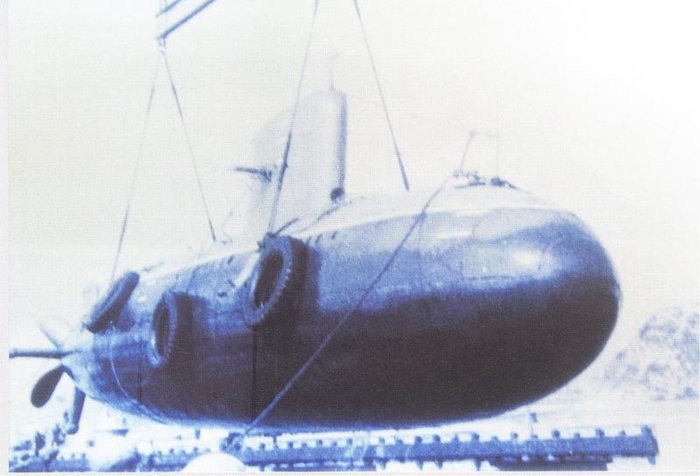 由邓三瑞作为总负责人研制成功的我国第一艘实验潜艇。该艇长15米、重约30吨,1959年底在旅顺海试成功