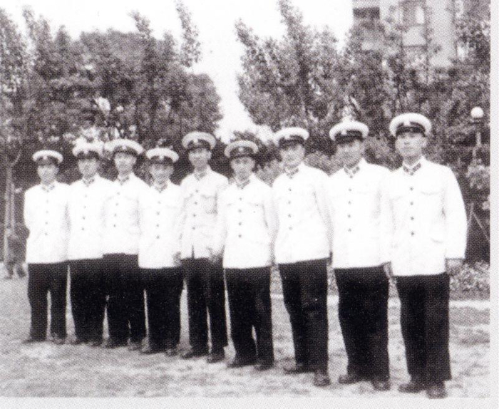 1959年,邓三瑞(右4)、冯捷(右5)和他们的团队在上海某海军研究所合影