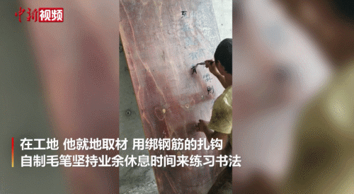 高手在民间!28岁钢筋工就地取材练书法