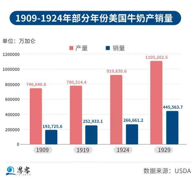 1929年,美国经济大萧条。乳制品产量严重过剩,大量牛奶滞销。于是,农场主为了保证利润,把大量过剩的牛奶直接倒进密西西比河。