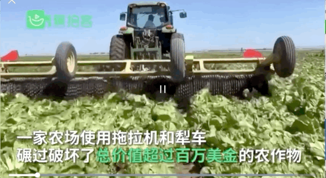成熟以后的蔬菜会被农场主直接用机器销毁,就地掩埋在土地里。