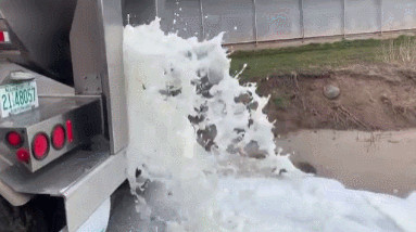 威斯康星、密歇根、宾夕法尼亚等乳制品大州的奶农陆续开始把牛奶倒入下水道、池塘、农田等。
