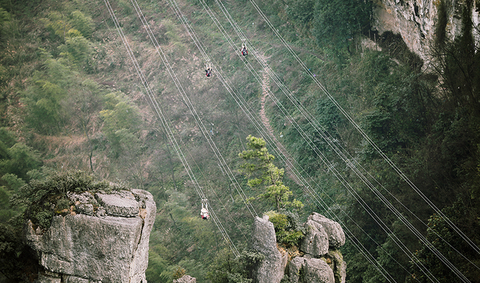 据梦幻奥陶纪微信公众号介绍,高空速滑是该景区“最受勇敢者欢迎”的高空项目,刺激程度标注为五颗星。景区里有5条不同的速滑路线,长短不一,高度不同,可以体验不同的风光,悬崖、山溪、林木等风光在高空速滑的飞翔中一览而尽。