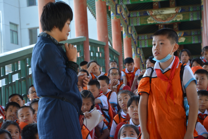 讲解中,王琰便是从黄河谈起,从永靖和兰州的这种“熟悉感”和“亲切感”入手,通过每个研学点的实景联想,启发营员们用眼耳鼻舌身意串联起所观、所感、所悟。期间,王琰不断以提问的方式互动,认真点拨、启迪、指引、分析,引出写作的三个秘籍:要有想象力、要有观察力、要有表达能力。