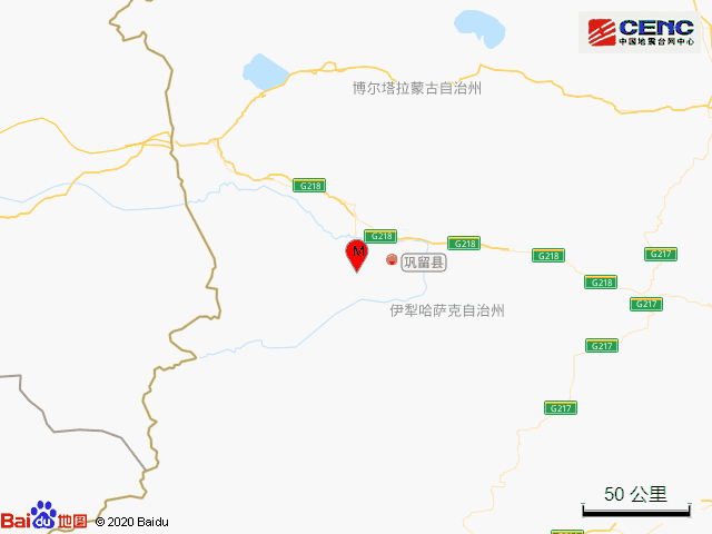 震中简介:巩留县隶属于新疆维吾尔自治区伊犁哈萨克自治州,地处伊犁河谷中部,伊犁河上游南侧,水土光热资源丰富。巩留县东部主要为山地、草原,西部为河谷平原,气候冬长夏短,四季分明,日照充足。该县面积约4327平方公里,辖5镇3乡,2014年人口约20万,2014年该县GDP达39亿元。