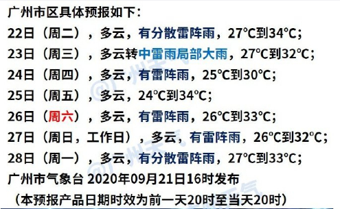 广州天气预报: