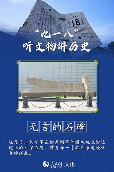 这块没有碑志和铭文的石碑,每一寸都刻录着侵略者的残暴。1945年8月,日本战败投降,沈阳人民将这块“炸弹碑”推倒。如今,石碑陈列在沈阳“九·一八”历史博物馆广场东侧。