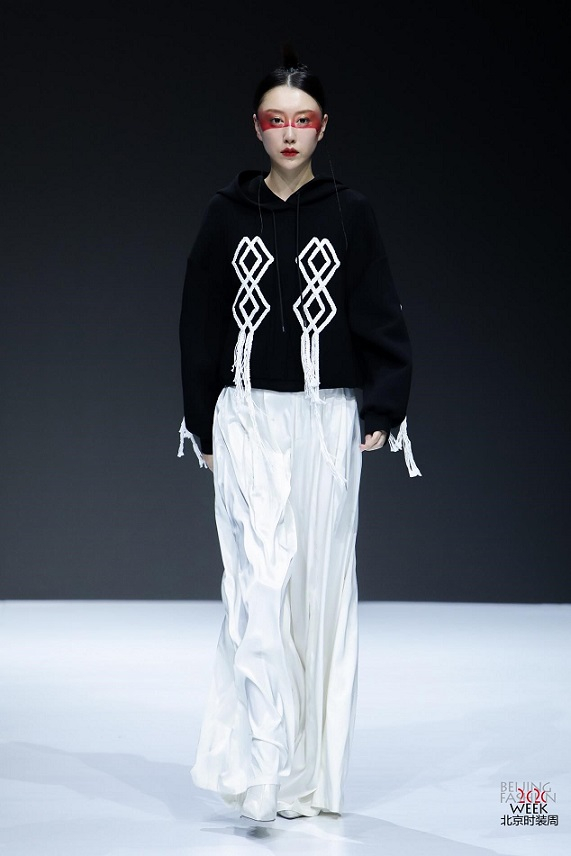 设计理念:马齿纹是传统彝族服饰典型纹样,设计师打破常规的排列方式,用当代设计语言解构,重组。让其置之于当下审美,这是一场传统技艺与现代设计的对话!
