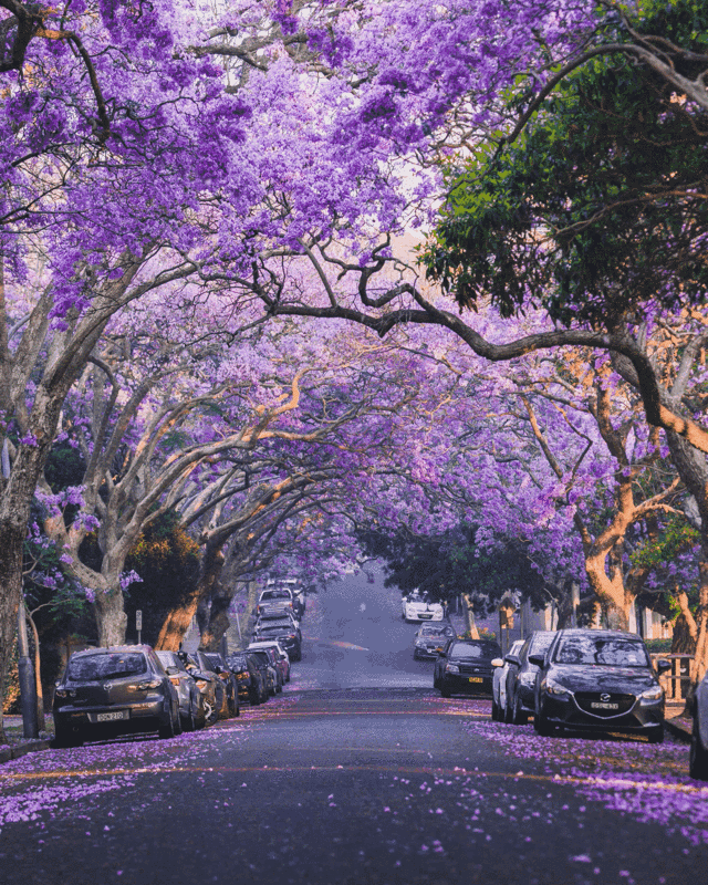 格拉夫顿小镇距离悉尼约 6 小时车程,每年 10 月中至11月中旬花期期间,1,700 株蓝花楹树将整个小镇点缀成一片花海。