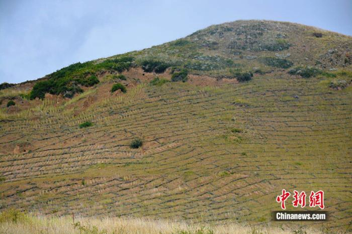 中新网阿坝9月22日电(房家梁)走进四川省阿坝州若尔盖县辖曼镇西仓村治沙点,山坡上巨大的“棋盘”格外醒目。县林草局生态修复股助理工程师涂胜介绍,这是用于治理草原沙化的高山柳沙障。