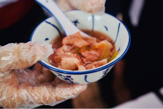值得一提的是,蕉岭三及第中特别加了红粬,让汤呈现淡淡的红色,据《本草纲目》载:“红粬有消食祛肿、活血通络、和胃健脾之功效。”从红粬中提取红粬霉素对治疗慢性肠炎、痢疾有效。