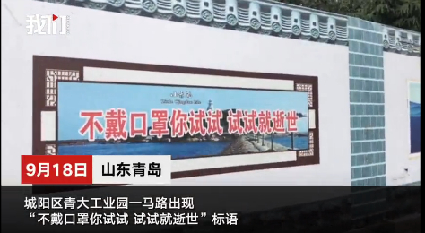 青岛出现“不戴口罩你试试 试试就逝世”标语