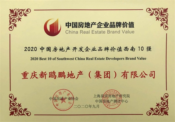 2020年9月17日,由中国房地产业协会、上海易居房地产研究院中国房地产测评中心联合主办的“2020中国房地产企业品牌价值测评成果发布会暨房地产品牌发展高峰论坛”在上海佘山世茂洲际酒店隆重召开,新鸥鹏集团荣膺“2020中国房地产开发企业品牌价值西南10强”。