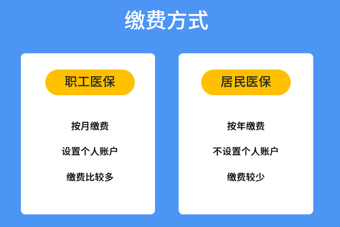 而居民医保按年缴费,一般不设置个人账户,通俗点说居民医保缴费便宜点。
