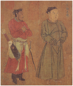 在南宋刘松年的《中兴四将图》中,猛将岳飞就是经典的大肚形象。